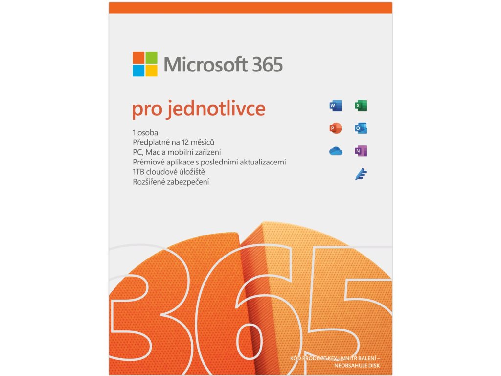 Díky sadě známých kancelářských aplikací od Microsoftu získáte přístup ke snadné tvorbě dokumentů, tabulek či prezentací. Po dobu jednoho roku budete moci využívat aplikace Word, Excel, PowerPoint, OneNote, Outlook, Access a Publisher. Navíc získáte 1 TB v cloudovém úložišti OneDrive.